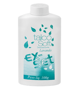 O talco soft desodorante Lavanda EX-SET é feito com a mais alta qualidade e pureza. Deixa a pele suave macia e perfumada.