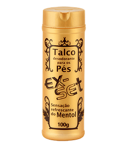 O talco desodorante mentolado para os pés EX-SET, ajuda a absorver a umidade, deixando os pés secos, confortáveis e perfumados. A sua fórmula contém mentol promovendo uma sensação refrescante.